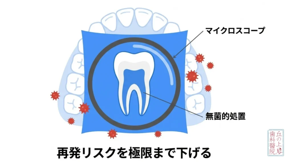 神経のない歯は痛みを感じないため、自分では気づけません。気づいた時には手遅れになっていることがほとんどです。3ヶ月〜半年に一度の定期検診で、レントゲン撮影やマイクロスコープによるチェックを受け、早期発見・早期対応を行うことが、保存した歯を長持ちさせる生命線となります。