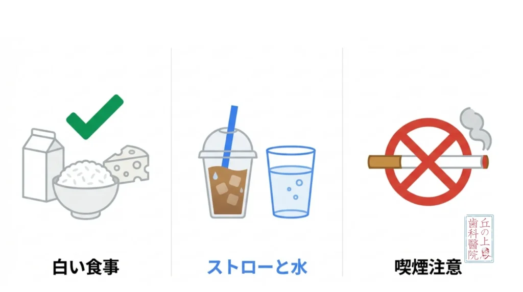ホワイトニング後の生活は、決して「我慢大会」ではありません。着色のメカニズムを正しく理解し、リスクの高い食品を避けつつ、万が一食べた後のケアやリカバリー方法を身につけておけば、好きなものを楽しみながら白さをキープすることは十分に可能です。
