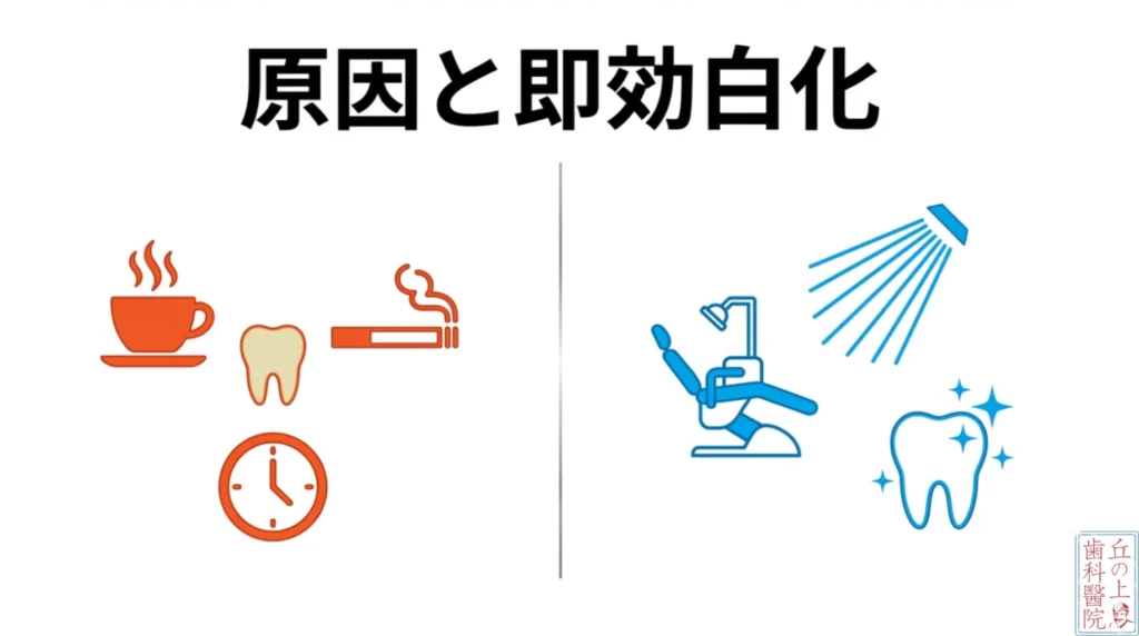 ホワイトニングを検討する上で、まずは「なぜ歯が黄ばんでしまうのか」というメカニズムを正しく理解することが欠かせません。原因を知ることで、自分にとってどのホワイトニングが有効なのか、また日常でどのような対策を講じるべきかが見えてきます。歯の変色には、大きく分けて「外部要因」と「内部要因」の2つの側面があります。