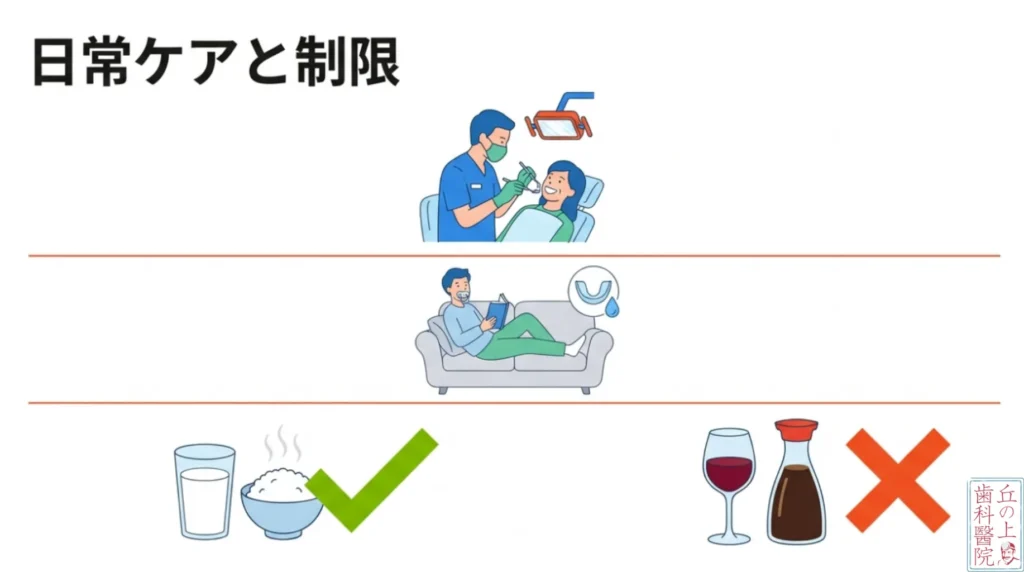 - 薬剤濃度の調整: ホームホワイトニングであれば、ジェルの濃度を下げて時間を調整することで痛みを回避できます。