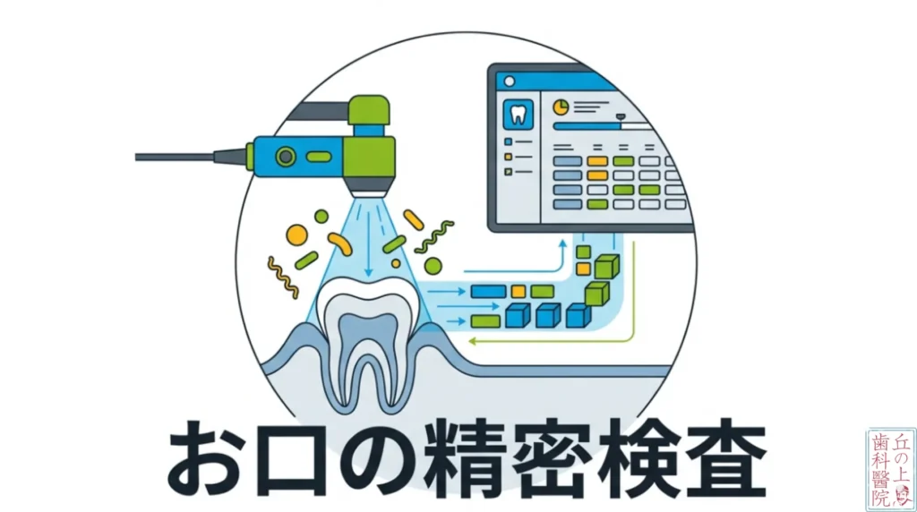 - 歯周ポケット測定: 歯と歯茎の隙間を測り、歯周病の進行度や隠れた炎症を数値化します。