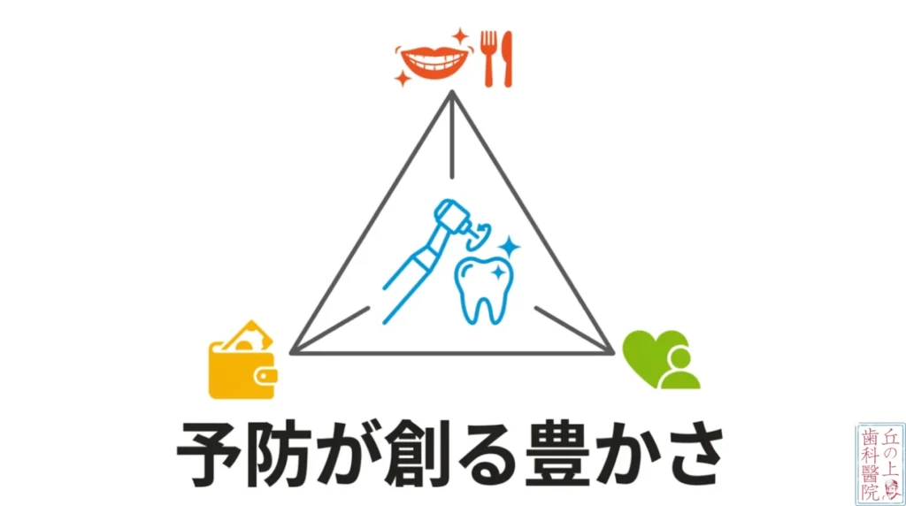 - 食生活の質へのこだわり: 予防歯科を始めると、自然と食べるものや食べ方にも関心が向き、結果として全身の健康状態が底上げされます。