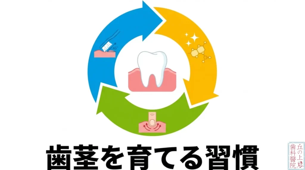 - 慢性的な炎症の停止: 歯周病菌による毒素が常に放出されていると、体はその刺激から逃げようとして骨を溶かします。プロのクリーニングで炎症の火種を消すことが重要です。